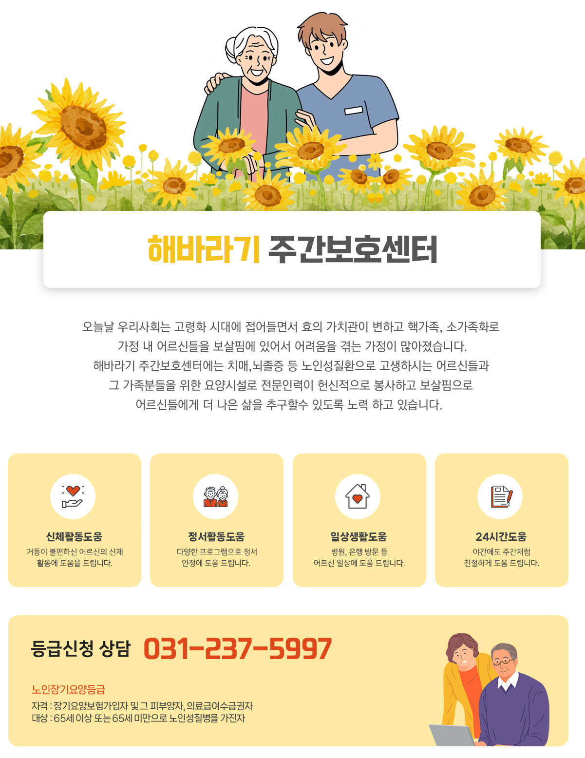 해바라기 주간보호센터에 오신걸 환영합니다.